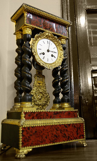Đồng hồ để bàn 2 cột đá của Pháp sản xuất cuối thế kỷ 19.