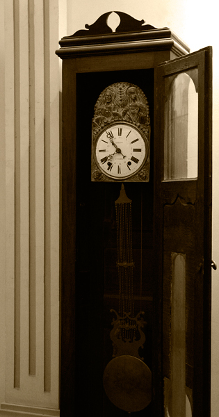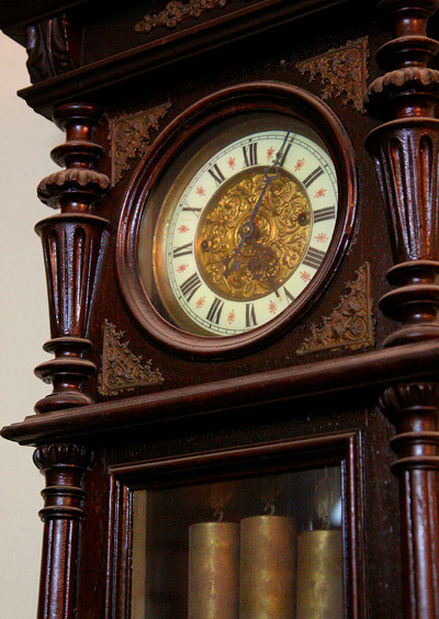 Một chiếc đồng hồ tủ cổ trong bộ sưu tập của gia đình anh Dũng.