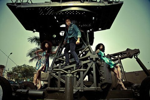 | Thủy Tiên hở hang uốn éo giữa một bên là bức tượng thể hiện tình dân quân, một bên là bức thể hiện sự đoàn kết đấu tranh. Hình ảnh này đã bị "ném đá" vì nhiều người cho rằng Thuỷ Tiên đã vượt xa những giới hạn về văn hóa. |