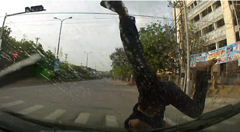 | Hiện trường vụ 'xe điên' hất người lên nóc nhà |