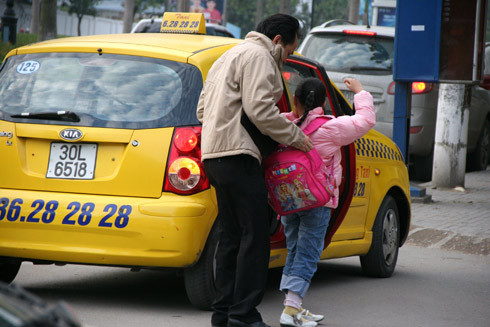 Dịch vụ taxi đắt khách ngày rét vì cha mẹ nào cũng muốn cho con đi học bằng ô tô (Ảnh: VTC) |