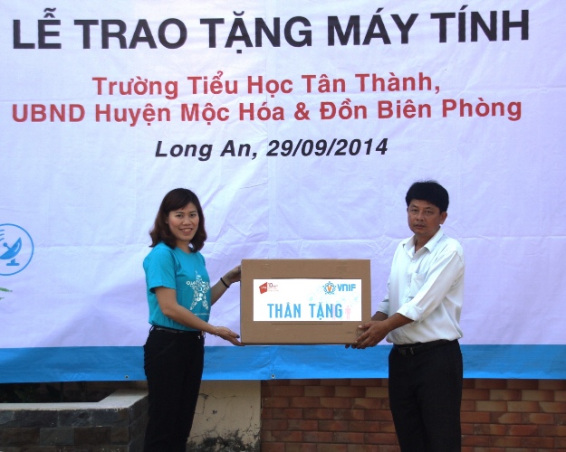 Ngày 29/9 vừa qua, quỹ Cộng đồng Internet Việt Nam (VNIF) thuộc Công ty Cổ phần VNG tiếp tục hành trình “Đưa Internet về làng” bằng việc trao 40 bộ máy tính có tổng giá trị gần 400 triệu đồng cho huyện Mộc Hóa, Long An. Trong đó, trao 17 bộ cho trường tiểu học Tân Thành, 10 bộ cho UBND huyện Mộc Hóa và 13 bộ cho Bộ đội biên phòng tỉnh Long An.