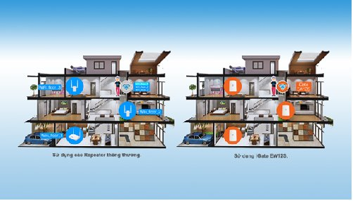Mô hình phủ sóng của hệ thống Mesh WIFI tối ưu hơn so với các Repeater thông thường |
