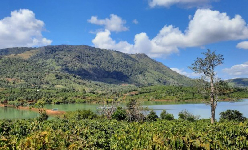 Xã Đăk Krong có khung cảnh thiên nhiên trù phú, rất phù hợp với mô hình cà phê cảnh quan (Ảnh: Tuấn Anh)