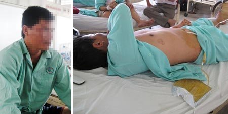 của anh D. và hàng xóm kéo đến thì anh đã kiệt sức nằm ôm bụng dưới đau đớn rên