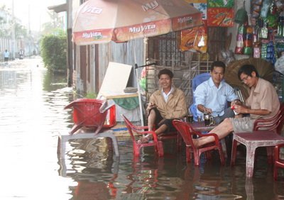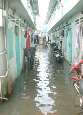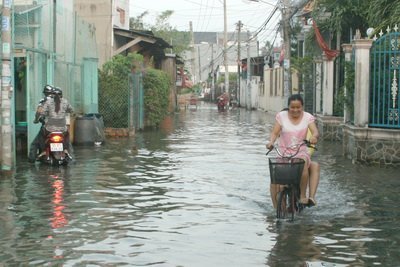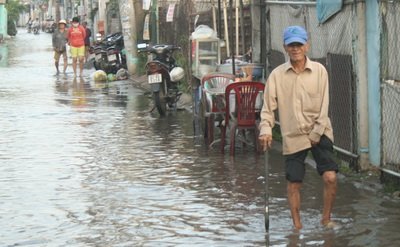 Ở khu nhà trọ trên đường số 7, nhiều người đã phải thức để chờ sáng. Một cụ già ngoài 70 tuổi, chống gậy dò đường vượt qua hàng trăm mét đường bị ngập nước cho biết: “Đêm qua tôi bị mệt. Định sáng nay đi kiểm tra sức khỏe nhưng không ngờ nước ngập cao quá nhưng cũng đành phải mò ra đường để đi khám bệnh”.
