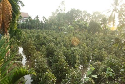 ngập úng hàng ngàn gốc mai chờ xuất bán. Dọc hai bên đường nhiều khách uống cà