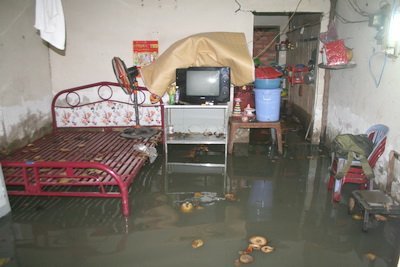 Nước lên rất nhanh, chỉ trong khoảng 15 phút mực nước lên cao đến nửa vách. Hàng