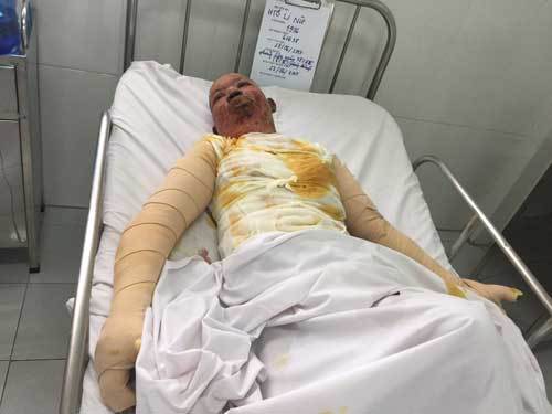 Chị H Tô được sơ cứu ở viện địa phương sau đó chuyển đến BV Chợ Rẫy để tiếp tục điều trị. Ngoài phỏng nửa thân người bên trên, bác sĩ vẫn đang tiếp tục theo dõi phỏng hô hấp.
