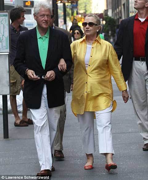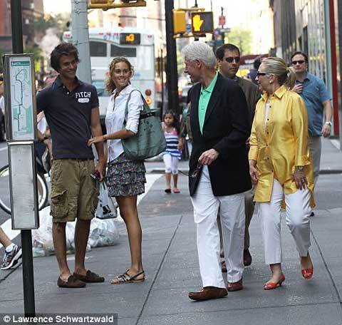 Khoác tay nhau tạo qua các con phố ở New York, cựu Tổng thống Bill Clinton và vợ đã có màn thể hiện tình cảm công khai rất hiếm. Cả hai trông rất thư giãn khi đi mua sắm dọc đại lộ Madison và trò chuyện, vẫy chào những người hâm mộ bên đường.