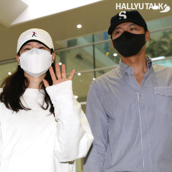 Hyun Bin và Son Ye Jin hạ cánh tại sân bay quốc tế Incheon ngày 28/4 sau chuyến trăng mật tại Mỹ dài ngày. Ngay khi đáp chuyến bay, cặp vợ chồng nhận được sự chào mừng nồng nhiệt của cánh phóng viên và người hâm mộ.Cặp đôi không ngại trao nhau những cử chỉ ngọt ngào trước ống kính. Khoảnh khắc Hyun Bin ôm vợ mình tình cảm thu hút bình luận trên mạng xã hội.Hyun Bin đi trước vợ, cả 2 cùng đội mũ lưỡi trai trắng - xanh navy. Họ đeo khẩu trang nhưng không khó để khán giả nhận ra 2 ngôi sao của làng giải trí.Cặp đôi lựa chọn trang phục giản dị và thoải mái trong ngày về nước. Son Ye Jin mặc chiếc áo phông trắng trơn nhẹ nhàng, đơn giản, còn Hyun Bin lựa chọn một chiếc áo sơ mi sọc đứng. Hai vợ chồng ưu tiên phối đồ đôi trong mọi hoàn cảnh.Son Ye Jin tươi tắn và đầy giản dị tại sân bay.Cả 2 vẫy tay chào người hâm mộ. Sau đám cưới, khán giả đang trông đợi những dự án tiếp theo của cặp đôi sẽ ra mắt trong thời gian tới.