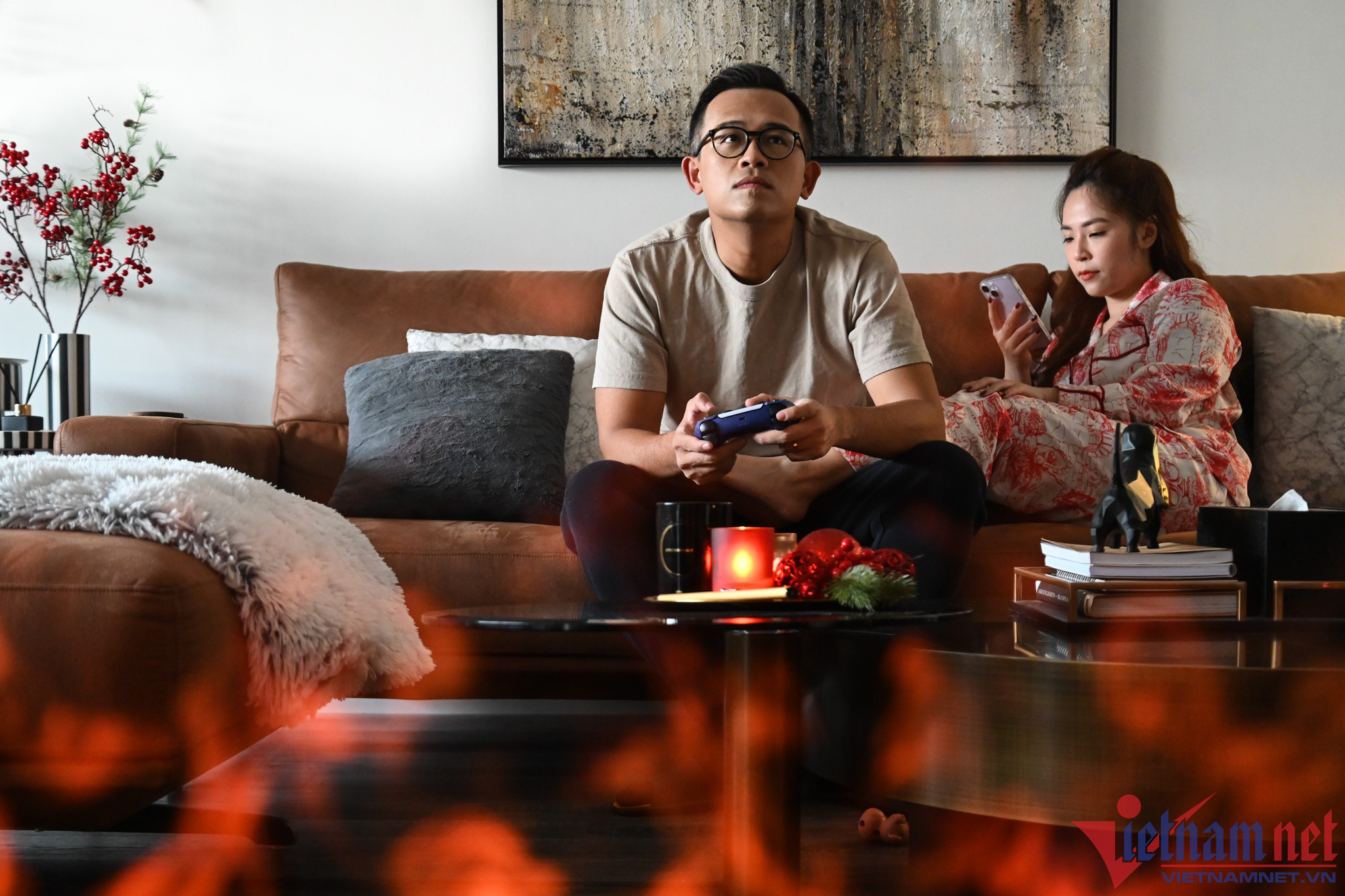 MC Đức Bảo cùng vợ mua cây thông Noel trang trí tại phòng khách để tạo không khí ấm cúng, xinh xắn cho căn hộ của mình.