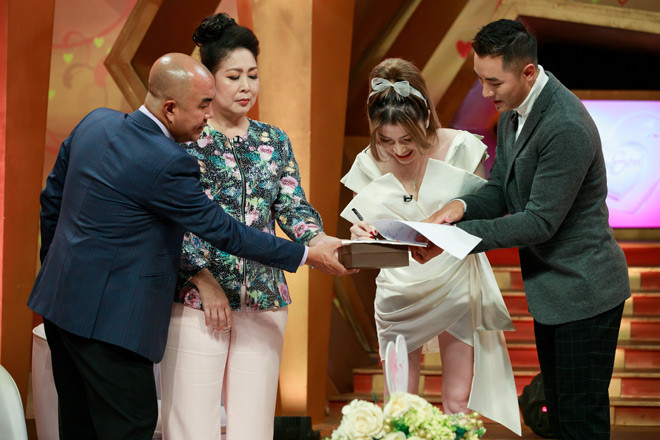 Cuối chương trình, thay vì gửi những lời yêu thương, mong muốn dành cho nhau, vợ chồng Quang Thái - Kim Hua “gây sốc” khi mang những món quà có giá trị "siêu khủng" để dành tặng đối phương. Nếu nữ giám đốc Kim Hua bí mật mang đến chương trình cặp nhẫn cưới và tận tay đeo cho chồng khiến anh vô cùng xúc động thì Quang Thái lại tặng luôn cho vợ bản hợp đồng mua xe ô tô. Hành động thể hiện tình cảm đặc biệt của cả hai khiến MC Hồng Vân - Quốc Thuận và cả phim trường vỡ òa hạnh phúc, chúc mừng cho cặp đôi.