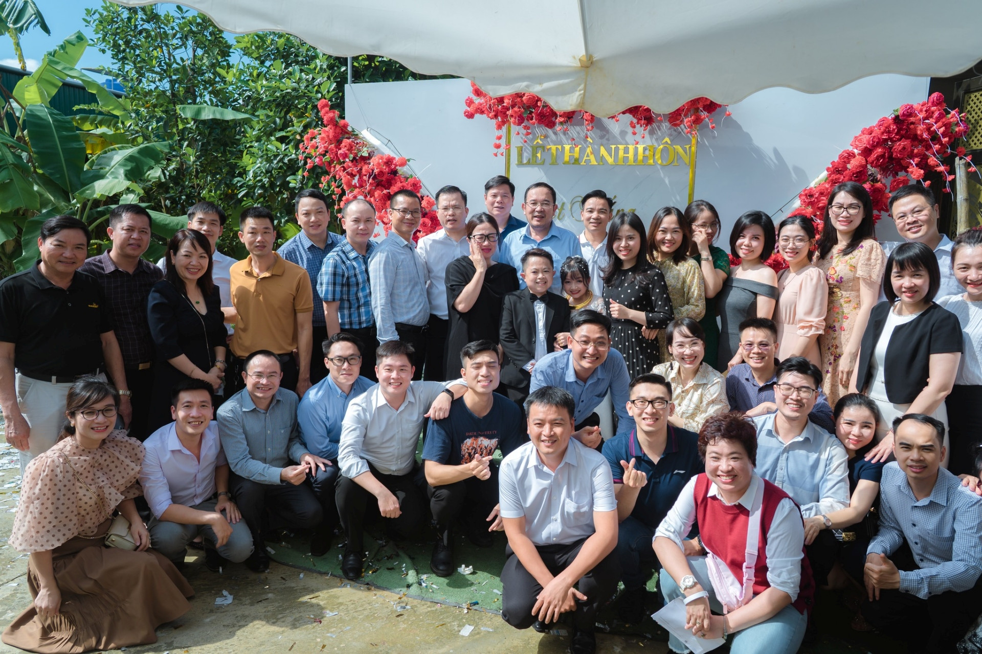 Do tổ chức lễ cưới ở quê, anh Thắng lên danh sách khách mời chỉ gói gọn 30 mâm cỗ. Tuy nhiên, đồng nghiệp, bạn bè… biết tin anh lấy vợ, về tham dự đông hơn dự kiến.
