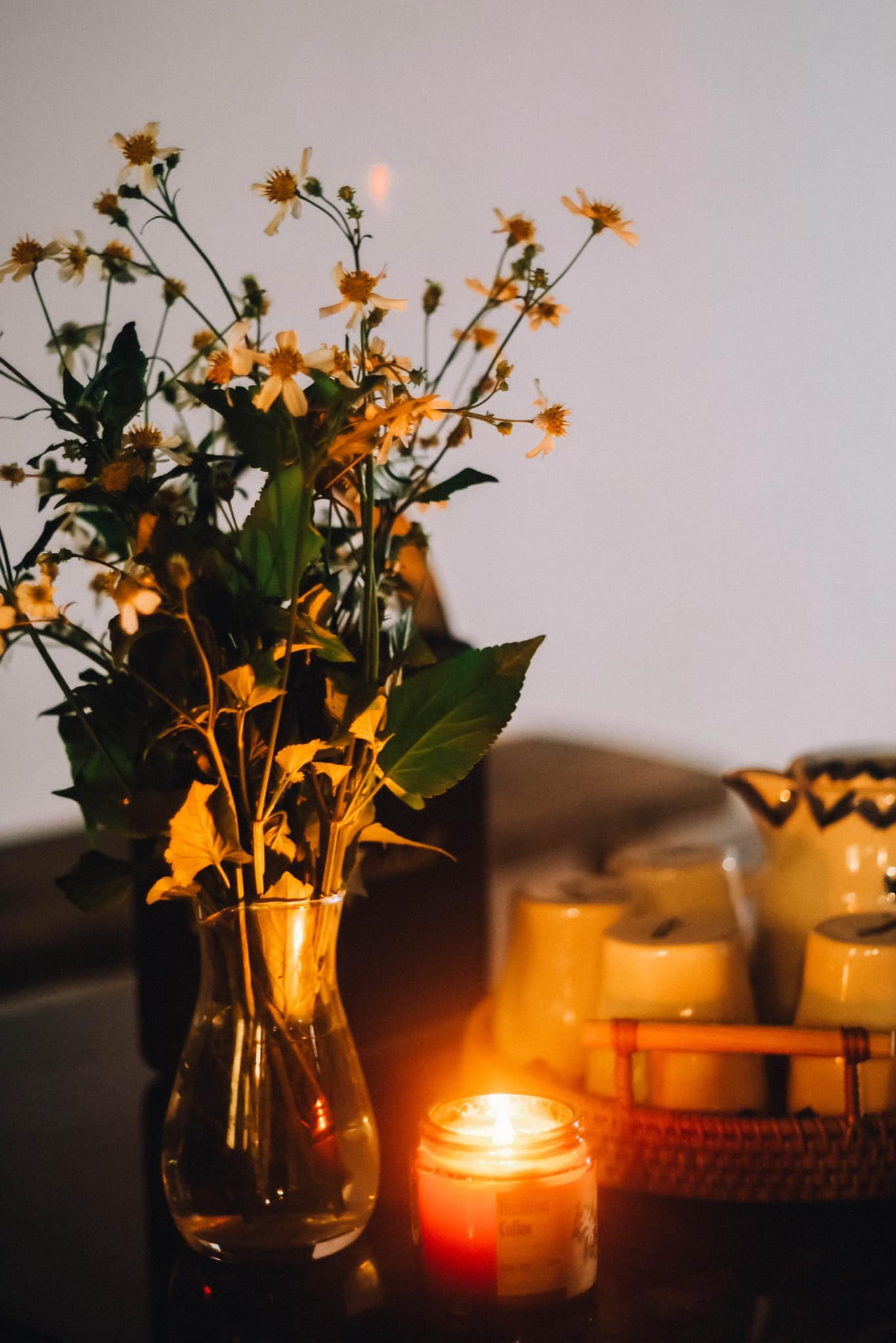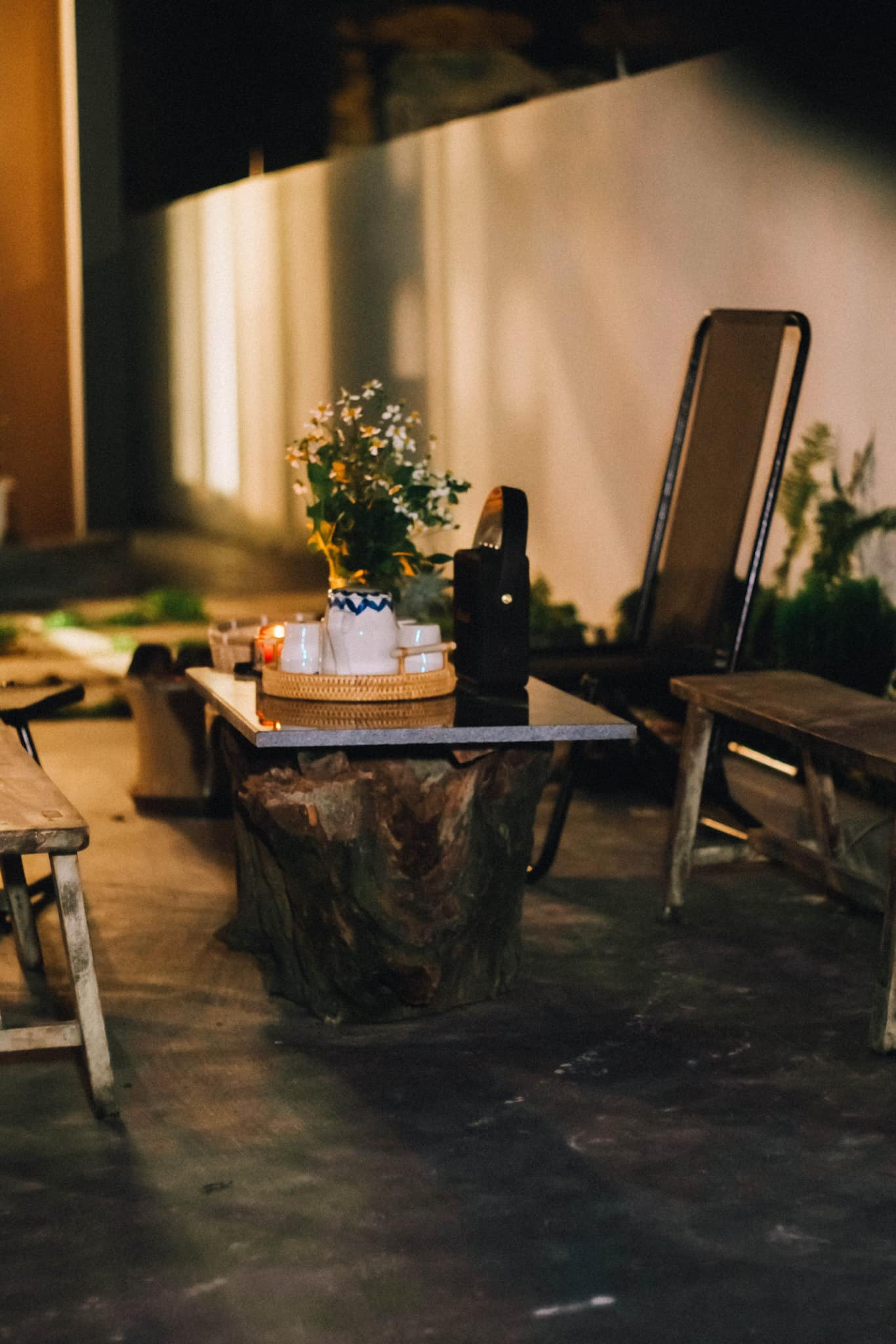 Bàn trà bên khoảng sân vườn lãng mạn. Một chút trà nóng, chút bánh ngọt, ánh nến và hoa dại cũng làm nên buổi tối ấm cúng của cả gia đình.