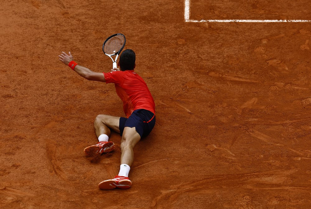 Tay vợt 36 tuổi người Serbia lập tức nằm ra sân ăn mừng đầy xúc động.