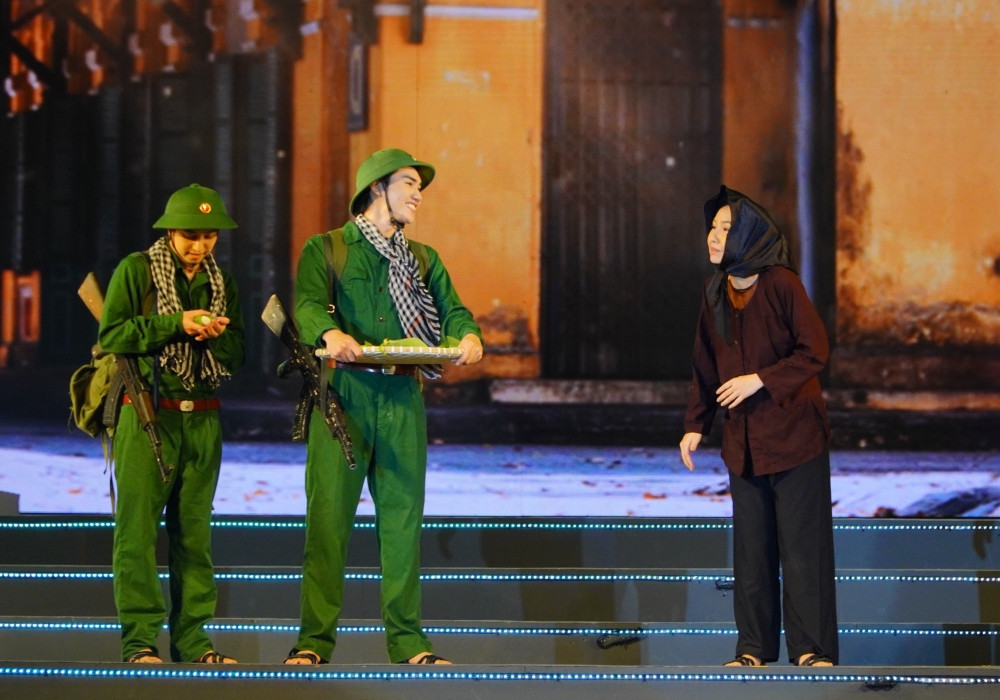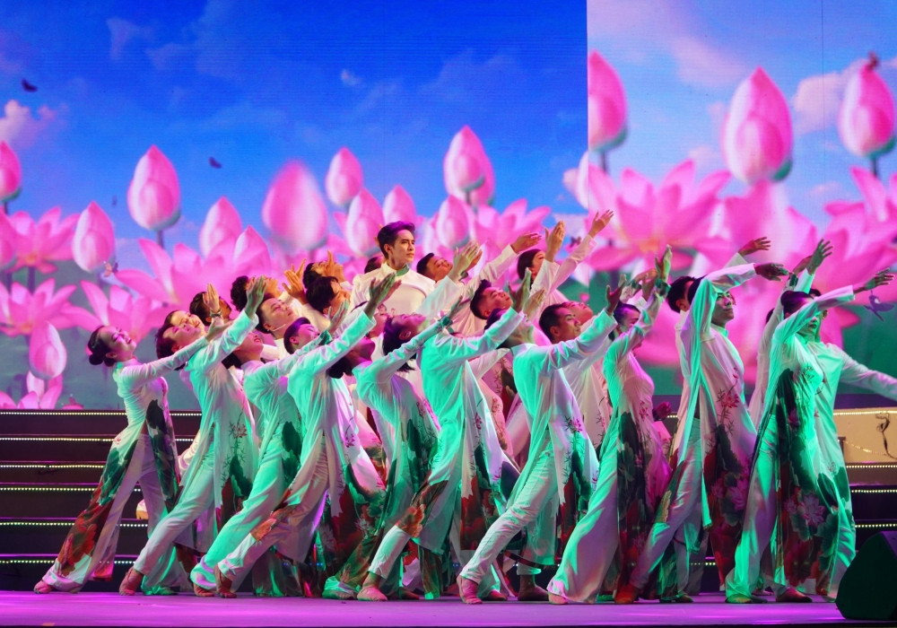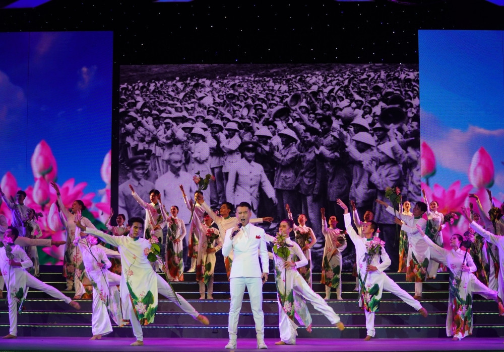 Các nghệ sĩ cùng tham gia chương trình nghệ thuật đặc biệt với chủ đề "Việt Nam vang khúc khải hoàn ca" dịp kỷ niệm các ngày lễ lớn của dân tộc diễn ra tối 28/4 tại TP.HCM.