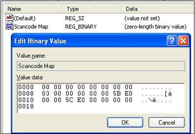 - Nhập giá trị trong khung Value data là 00 00 00 00 00 00 00 00 03 00 00 00 00 00 5B E0 00 00 5C E0 00 00 00 00 (0 = zero) để vô hiệu hóa cả 2 phím Windows.