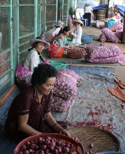 Chị Hà Quế Hương (25 tuổi, quê Tiền Giang) cho biết, hầu hết các công nhân làm việc cho các chủ vựa đều là những người ở các vùng quê. Đa số đều rất nghèo đã bỏ các nhà cửa gia đình để lên đây làm việc. Công việc của họ là bán hàng, làm các công việc phụ trợ, cắt tỉa rau quà v. v. . . Thu nhập của chị em giao động từ 120.000 đến 200.000đ/ngày.