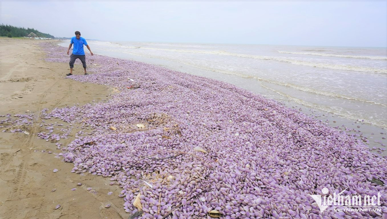 Cũng theo ông Hải, thống kê sơ bộ, số vỏ ngao dạt vào biển với số lượng cả chục tấn, kéo dài dọc bãi biển khoảng 3km.