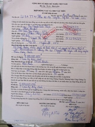 Những giấy tờ cho vay của các bên trong những vụ vỡ nợ