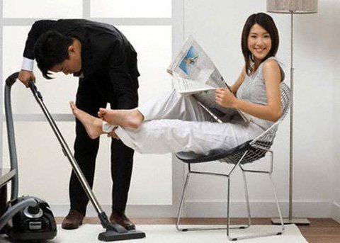 Khi còn yêu nhau, biết Hồng quen được chiều chuộng nên từ nhỏ đến lớn chẳng bao giờ phải động chân động tay làm gì ngoài việc học, nhưng hồi đó, phần thì đang sung sướng do vớ được “vợ giàu”, phần khác, Đăng hi vọng cưới xong sẽ tìm cách “dạy vợ ”. Song, hóa ra cậu hi vọng hão. Hồng không chỉ vụng mà còn lười. Thời gian đầu, Đăng cố gắng vừa khuyên bảo vừa “cầm tay chỉ việc” cho vợ. Song, chẳng những Hồng không chịu “học” mà còn đụng đâu là đổ vỡ đấy. Đã thế, không ít lần, cô làm mình làm mẩy, giận dỗi: “Trước khi cưới, em nói không biết làm việc nhà, anh bảo vẫn chấp nhận cơ mà!”. Thấy thế, Đăng đành làm một mình cho nhanh.