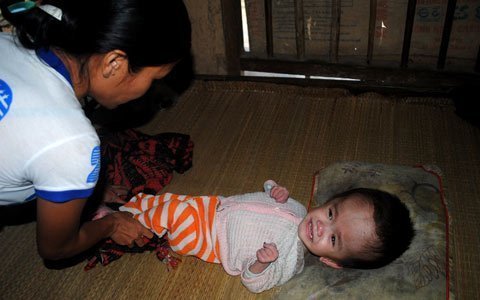 Vị chủ tịch xã nhiệt tình hướng dẫn chúng tôi đến nhà cháu Phước, vừa đi vừa nói: “Nhà khó khăn lắm, thu nhập không đủ nuôi con. Hai vợ chồng làm mấy sào ruộng, rồi làm thuê làm mướn chưa đủ cho hai đứa lớn đi học, cháu Phước chỉ có nằm một chỗ nhờ bà nội trông nom, 4 năm rồi không hề có tiền để đưa đi bệnh viện”.
