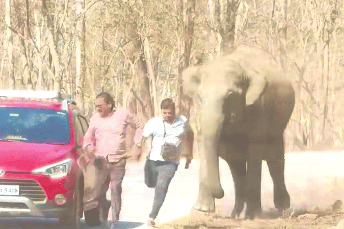 Một chiếc xe bán tải màu đen khác đỗ bên cạnh đã nhanh chóng rời đi, khi thấy con voi đến gần. Thấy vậy, con voi quay lại chiếc xe trước đó để tìm kiếm nhiều lần nữa.