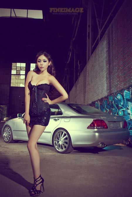 Chiếc váy vừa ngắn vừa bó sát đã giúp cô nàng tự tin khoe vòng 1 gợi cảm và đôi chân thon dài của mình bên xe.