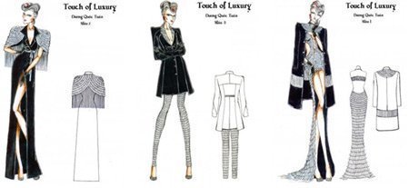 Ước mơ chạm vào sự xa hoa, lộng lẫy của những bữa tiệc đêm với hương rượu nồng nàn, quyến rũ, cùng với ánh sáng huyền ảo phát ra từ những chùm đèn pha lê hoa lệ, Dương Quốc Tuấn đã cho ra đời BST "Touch of Luxury". Form dáng đơn giản và hiện đại, lấy màu đen làm chủ đạo nhưng chính nhưng chi tiết tinh tế, cầu kì trên trang phục sẽ là điểm nhấn giúp nữ chủ nhân "bắt" mọi ánh nhìn.