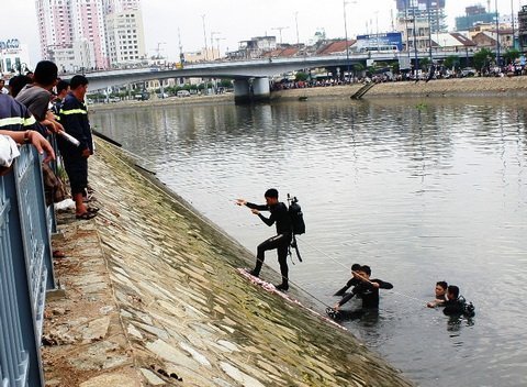 Phòng CS cứu nạn, cứu hộ huy động hàng chục người nhái tham gia tìm kiếm. Đến