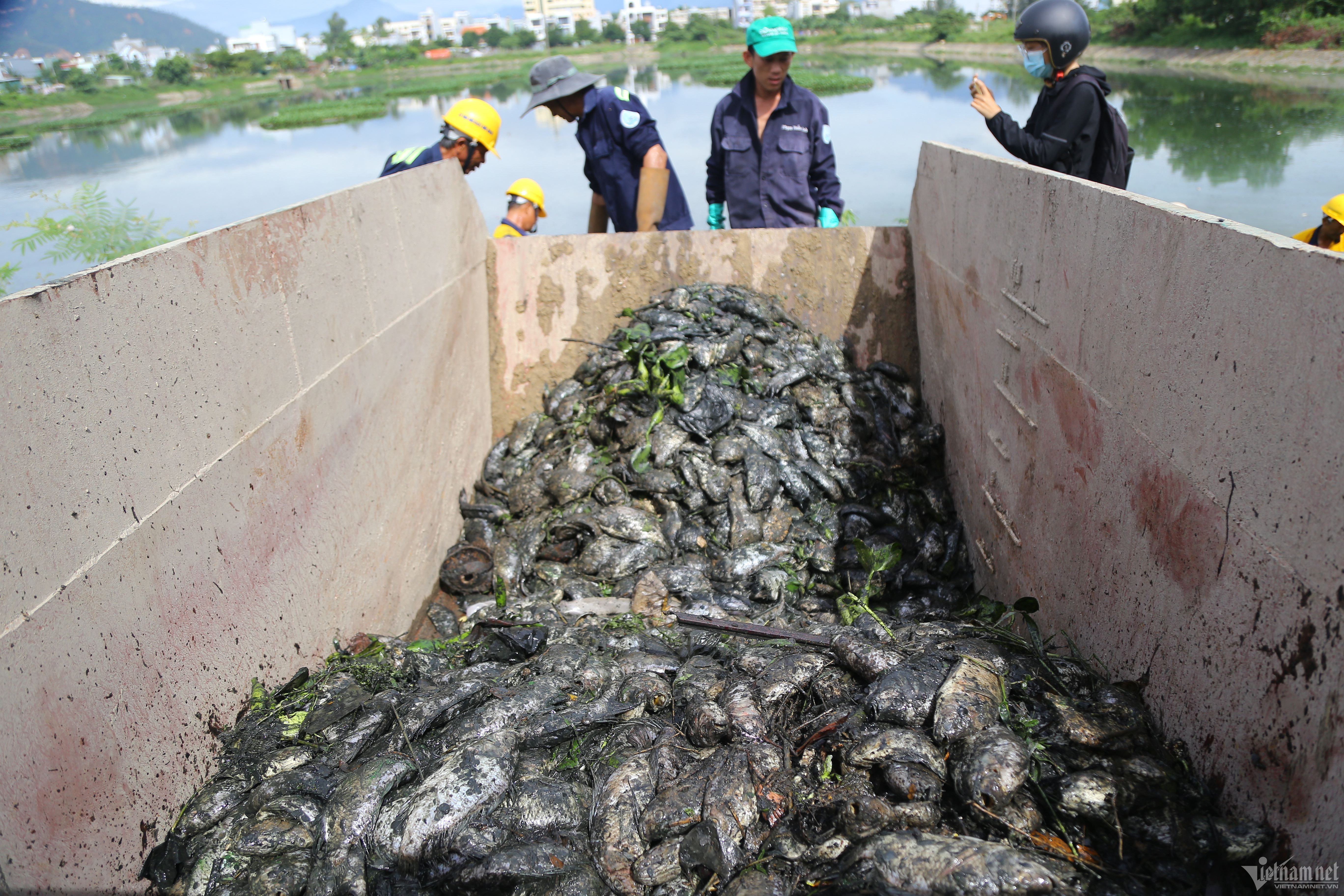 Theo ghi nhận, cá chết phần lớn là rô phi. Trong sáng cùng ngày, Công ty Thoát nước và xử lý nước thải TP Đà Nẵng cử khoảng 30 công nhân tập trung vớt cá. Lượng cá chết ước tính hơn 6 tấn...