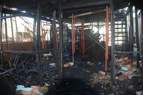 Ngôi nhà gỗ 2 tầng bị thiêu rụi gần như hoàn toàn sau vụ cháy |