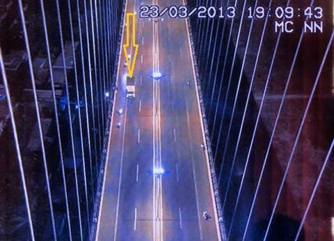 Trước khi vụ TNGT kinh hoàng trên xảy ra, chiếc xe tải 67N - 3684 đã dừng trên cầu Cần Thơ vào lúc 18h50p43s ngày 23/3.