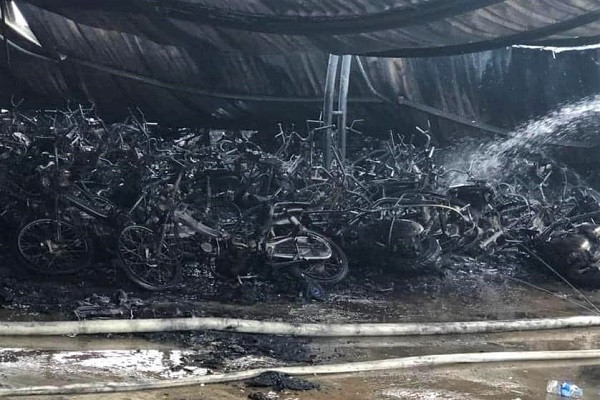 Hàng trăm xe máy của cán bộ, công nhân bị cháy sau vụ hỏa hoạn (Ảnh: Công nhân cung cấp).