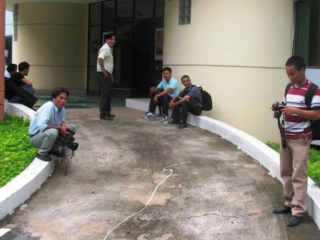 Cảnh phóng viên báo chí chờ trước trụ sở Sở GTVT Bình Dương.
