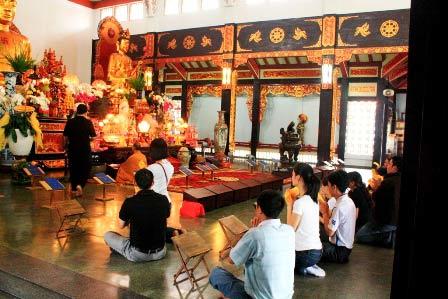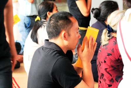 Các thân nhân của nạn nhân người Trung Quốc “cúng thất” cho người thân bị nạn vào sáng 26/5 tại chùa Vĩnh Nghiêm.
