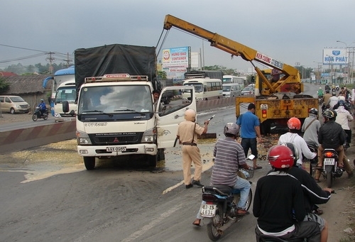 Nguyên nhân được xác định, xe tải 49X-3985 do lái xe Nguyễn Văn Hùng điều khiển chở hàng vạn quả trứng gia cầm lưu thông đến vị trí này đã bị lật ngang giữa đường. Trứng vỡ văng tung tóe khắp nơi.