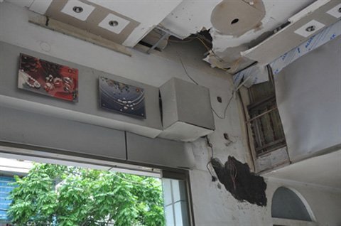 lỗ này. Khi nổ, lỗ đã bị phá ra to hơn, gạch vữa vụn bắn ra đường Phan Bội Châu.