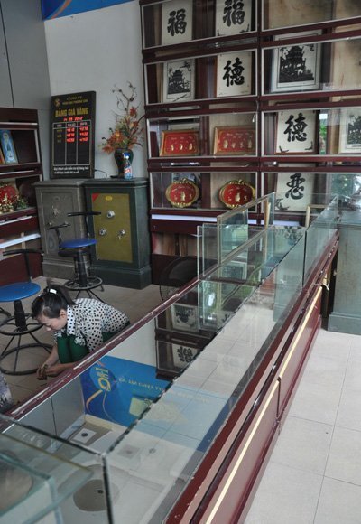 | Tiệm vàng đã mở cửa bình thường vào sáng 14/9, nhưng tủ trưng bày trống rỗng |