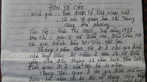 | Đơn tố cáo của gia đình H. gửi đến báo VietNamNet - Ảnh: T.Xuân |