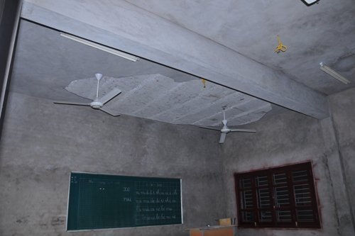 Tại hiện trường lớp học 1C, nơi vừa xảy ra vụ tai nạn khiến 4 cô trò nhập viện, quan sát thấy toàn bộ mảng tường phía bục giảng đã bị rơi xuống cùng một vết nứt dài chạy dọc suốt chiều dài lớp học. Do vôi vữa rơi mạnh khiến bàn giáo viên bị thủng và vỡ một miếng, vị trí bục giảng có nhiều viên gạch bị lõm xuống.