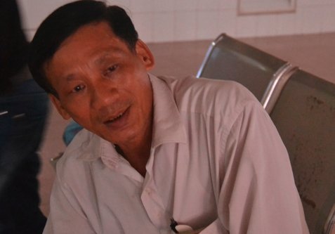 Ngồi đợi ngoài hành lang chờ đến giờ thăm con, còn có bác Trần Văn Tình (SN 1959, trú tại thôn Nguyễn Trãi, xã Vũ Đông, huyện Kiến Xương, tỉnh Thái Bình)- là bố đẻ của nạn nhân. Bắt xe từ 6h sáng mà đến 10h trưa hôm nay mới xuống đến viện, lo lắng ngóng tin bác sĩ về tình trạng sức khỏe đứa con người cha cứ đứng ngồi không yên.