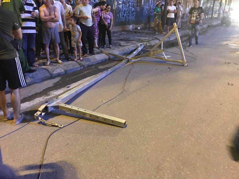 Còn theo một số nhân chứng, thời điểm xảy ra vụ việc, họ nghe thấy tiếng động mạnh và khi ra thấy thanh sắt nằm dưới đường cùng sợi dây cáp lòng thòng.