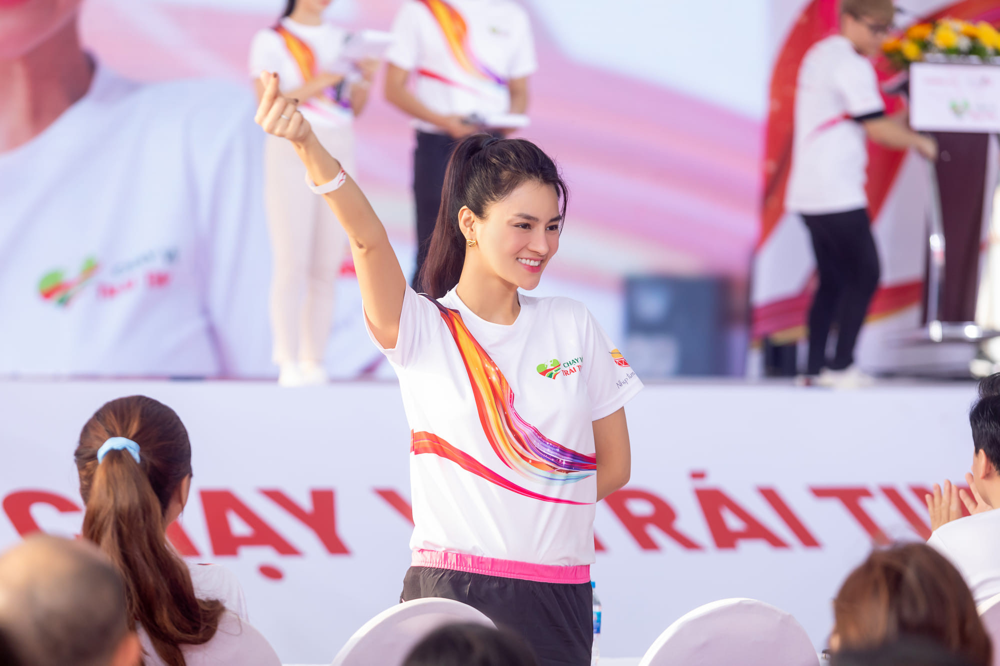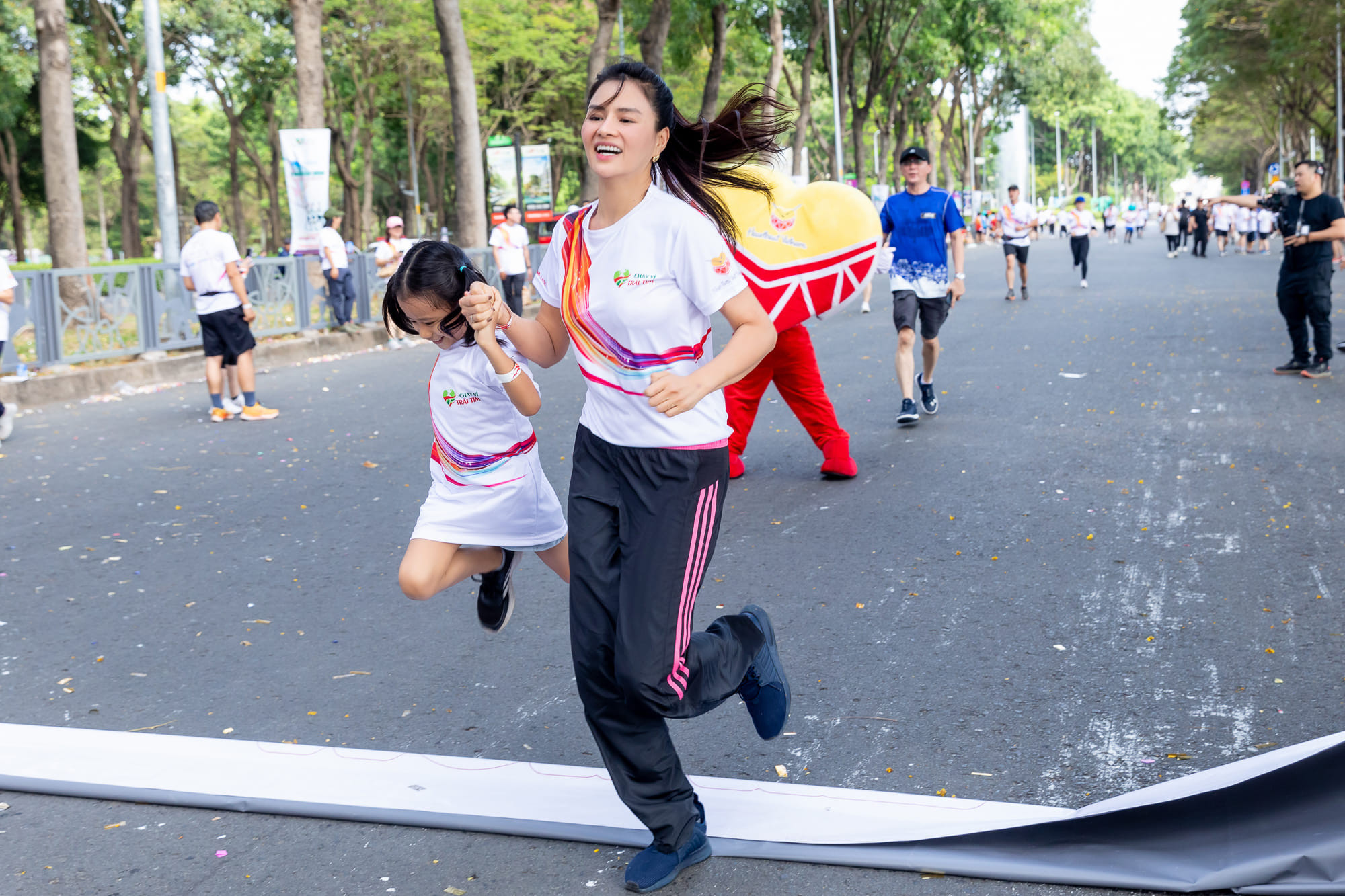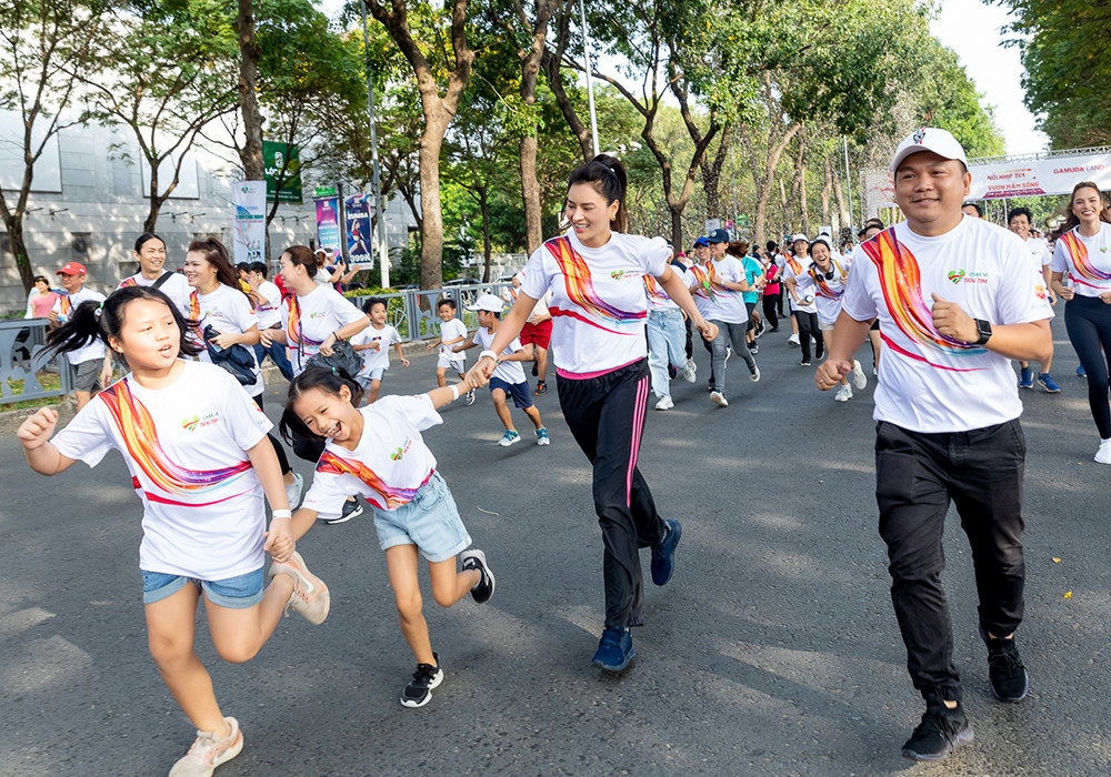 Vũ Thu Phương cùng ông xã - doanh nhân Thanh Hải và 4 cô con gái vừa tham dự đường đua "Chạy vì trái tim". Cả gia đình nữ siêu mẫu thức dậy từ sáng sớm để kịp có mặt ở điểm xuất phát lúc 6 giờ. Vũ Thu Phương hạnh phúc khi được cả gia đình hộ tống đi chạy thiện nguyện vì nhờ đó, các thành viên có những giây phút sinh hoạt cộng đồng ý nghĩa. Nữ siêu mẫu tiết lộ bị ngã chấn thương đầu gối 5 ngày trước giải chạy. Cô lo lắng vì sợ không kịp khỏi để tham gia hoạt động. Khi cuộc đua bắt đầu, bốn cô con gái chạy xung quanh bảo vệ mẹ. Trên chặng đường chạy dài 4,7km, Vũ Thu Phương được chồng con dìu lúc quá đau và cùng nắm tay nhau về đích. “Những hành động nhỏ nhưng lại cho tôi cảm nhận rõ sự ấm áp tình yêu và chỗ dựa của gia đình. Tôi mong mình góp bàn tay lan tỏa những việc thiện nguyện đến mọi người”, Vũ Thu Phương chia sẻ.Với vai trò đại sứ chương trình, Vũ Thu Phương cùng các nghệ sĩ đã truyền cảm hứng và vận động được sự ủng hộ của các cá nhân, tổ chức với nhiều lứa tuổi, thành phần cùng nhau làm thiện nguyện. Tổng số tiền quyên góp ở sự kiện là 5 tỷ đồng. Theo ban tổ chức, hàng trăm bệnh nhi bị tim bẩm sinh sẽ được mổ, được trao những trái tim mạnh khỏe.Nữ siêu mẫu cho biết dù đau nhưng vẫn thấy vui vì đóng góp phần nào công sức. Cô dành vài ngày để nghỉ ngơi trước khi tham gia các dự án kế tiếp. Cùng xuất hiện tại sự kiện còn có ca sĩ Lam Trường, Phương Vy, Hoàng Bách, top 5 Hoa hậu Hoàn vũ Việt Nam 2022 Lê Hoàng Phương, hoa hậu Sinh viên Thế giới Việt Nam 2022 Nguyễn Vĩnh Hà Phương…
