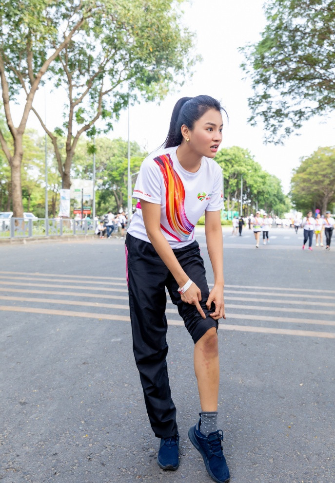 Vũ Thu Phương bị ngã chấn thương đầu gối 5 ngày trước khi tham gia hoạt động chạy gây quỹ cho trẻ em mổ tim. Cô cố gắng tham gia vì muốn góp sức lan tỏa công việc thiện nguyện.