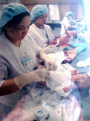 | Các bác sỹ của BV Phụ sản Trung ương đang chăm sóc các bé sơ sinh (Ảnh minh họa: Cẩm Quyên) |