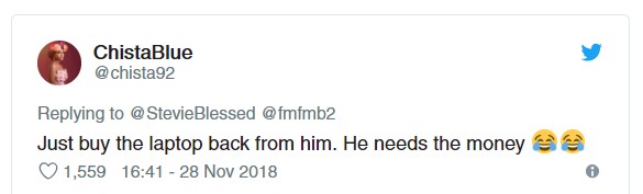 Một người dùng góp ý rằng chúng ta nên mua chiếc laptop kia cho tên trộm vì người đó có thể đang rất cần tiền