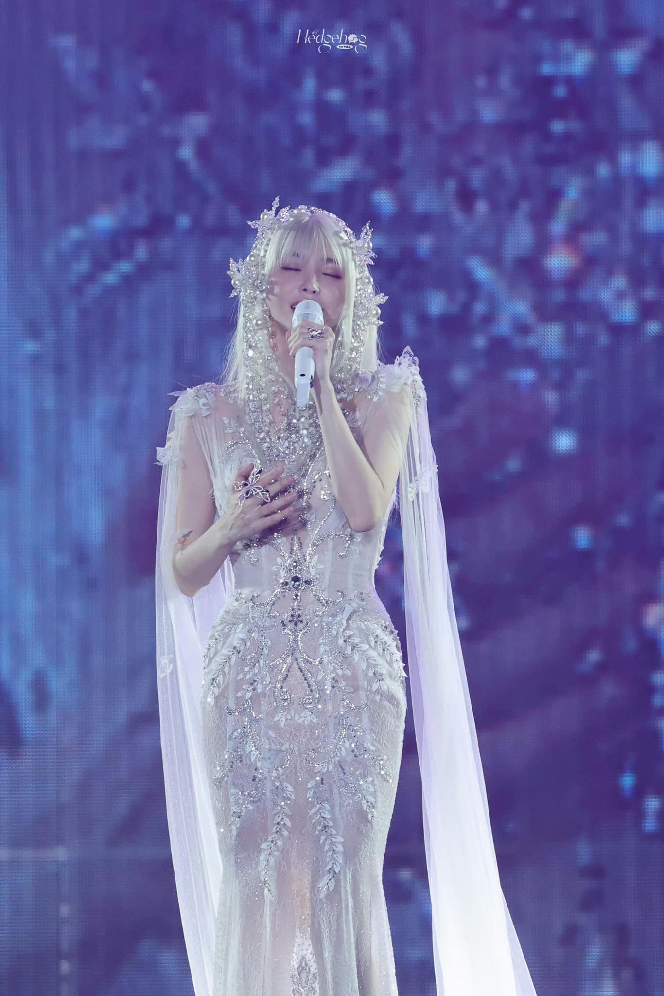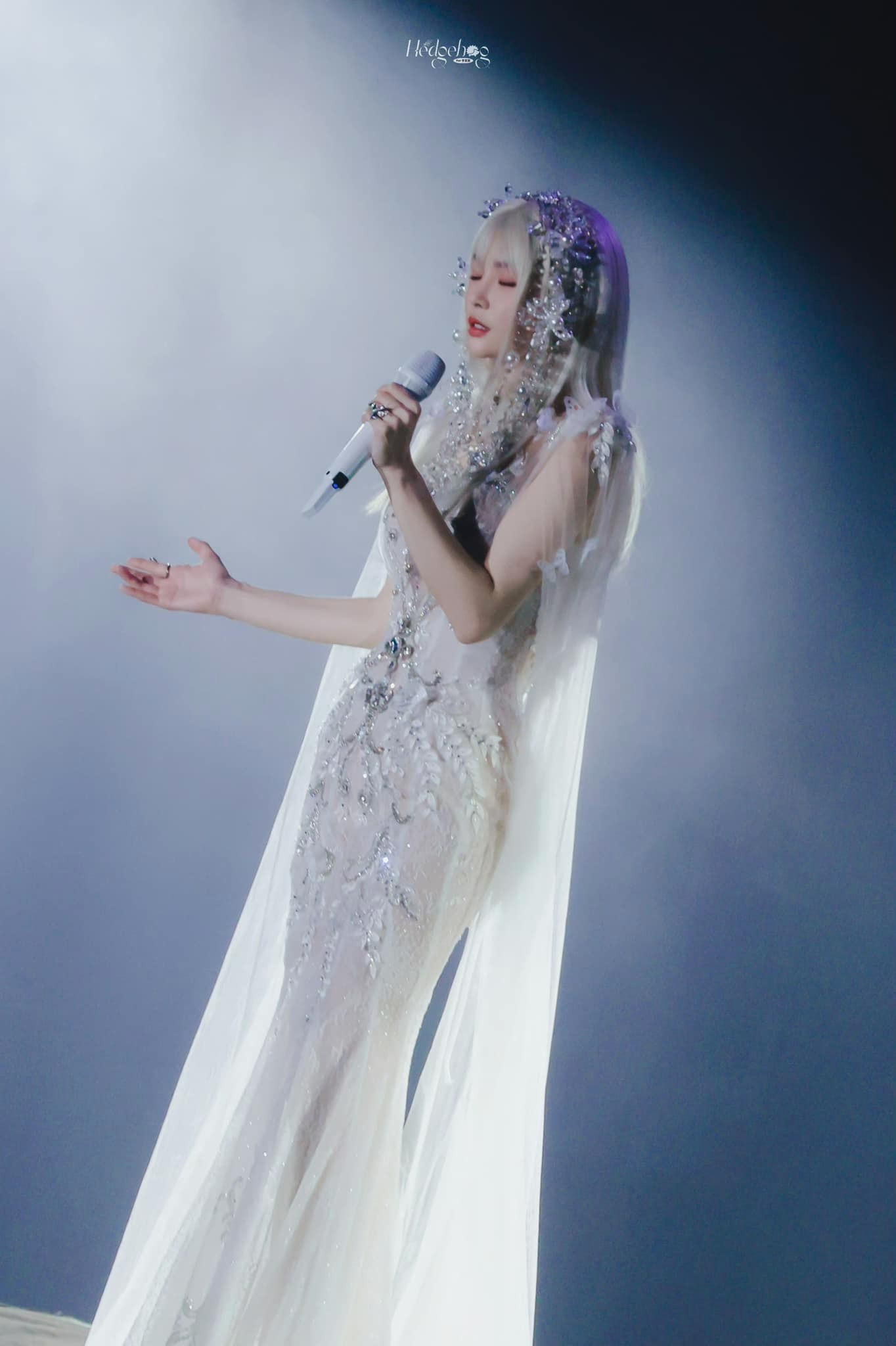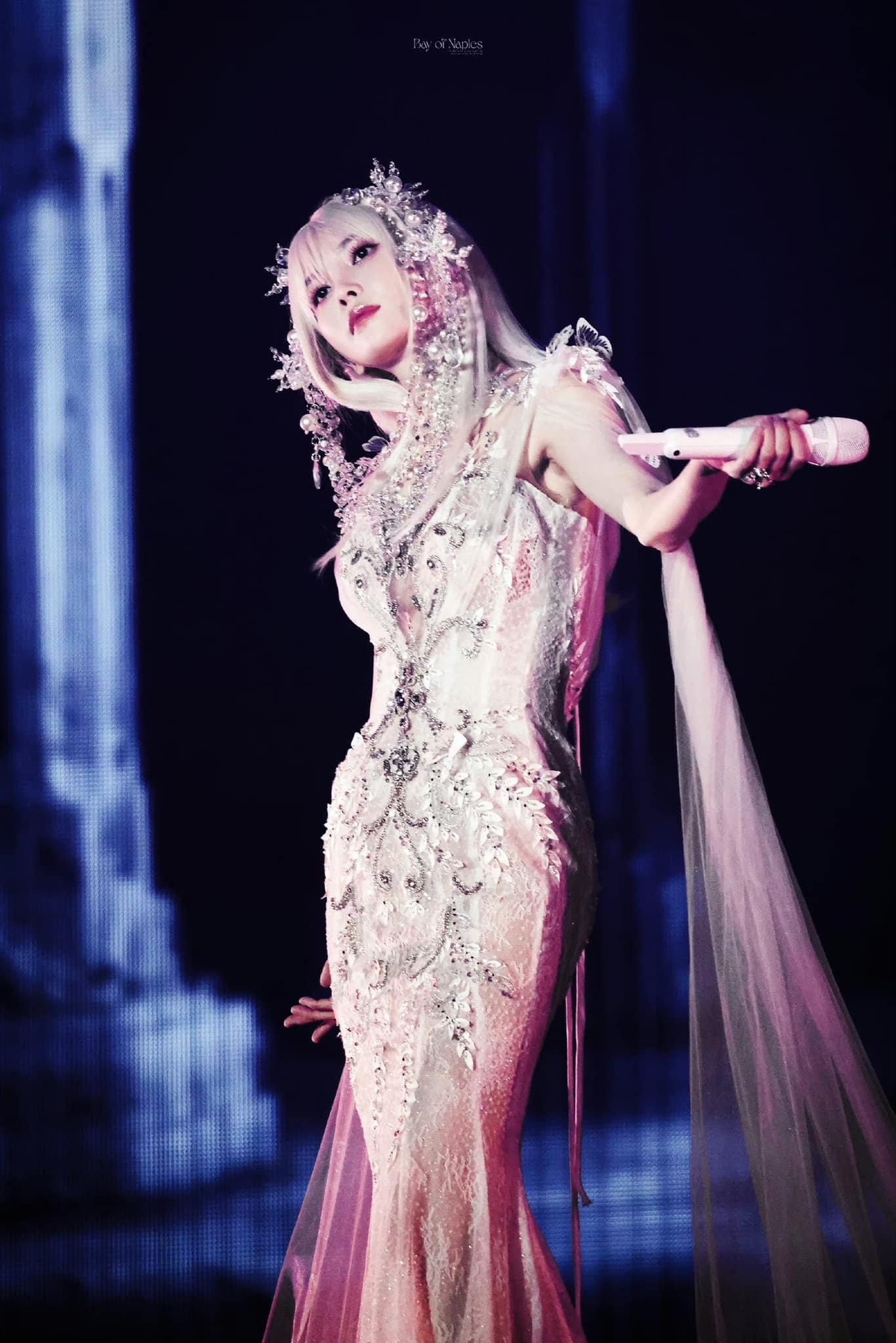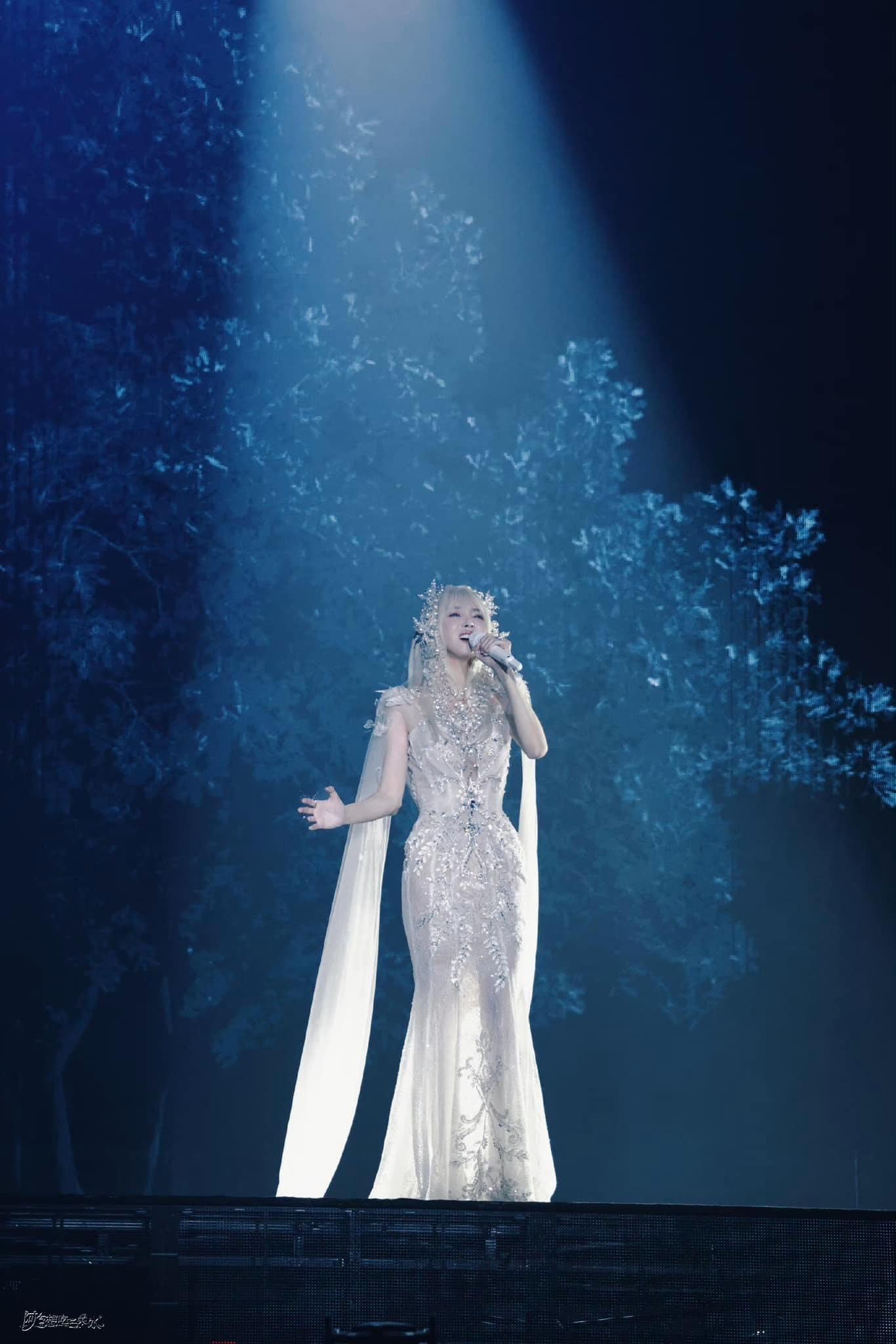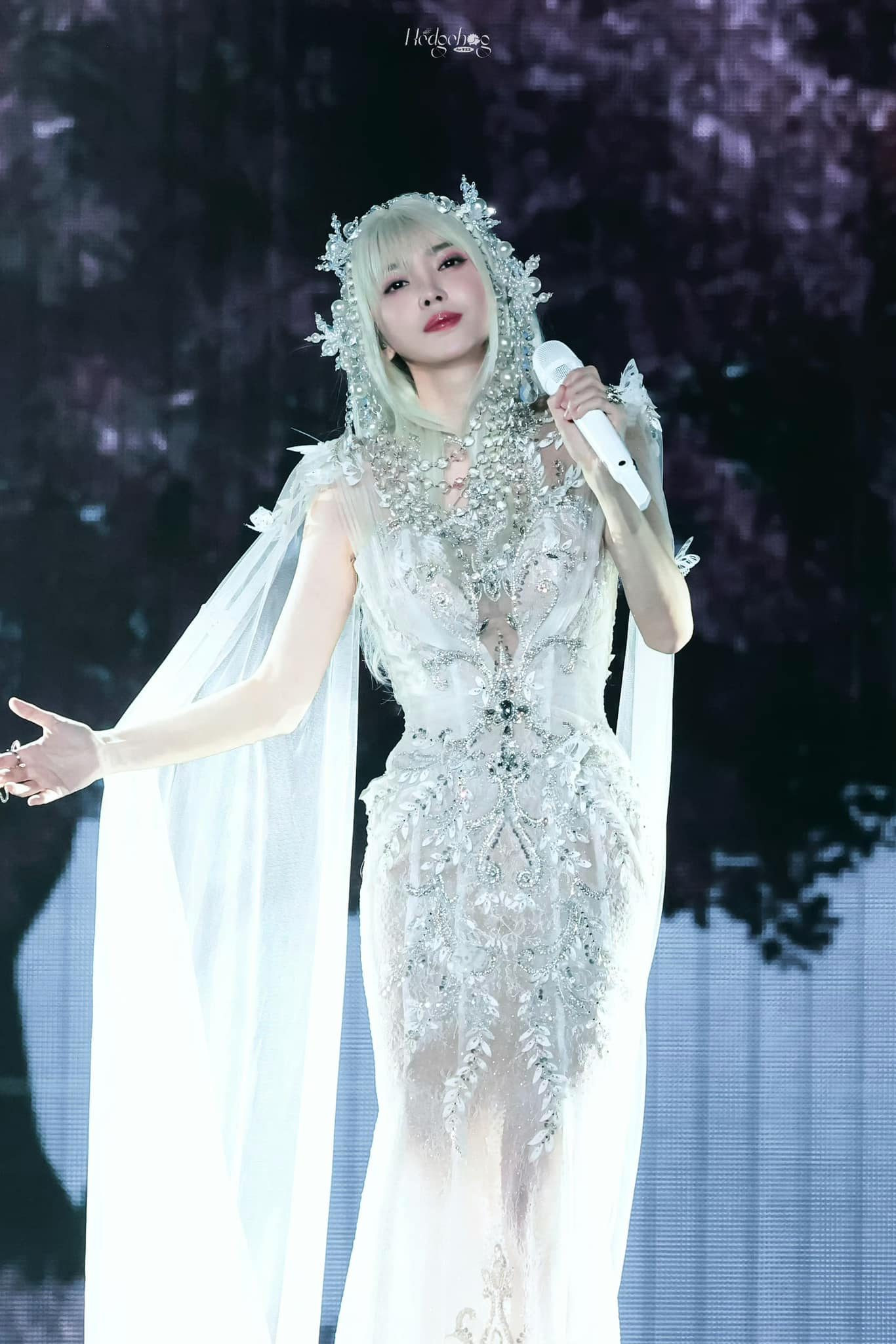 Xuất hiện trong liveshow hoành tráng tại Bắc Kinh (Trung Quốc), Vu Văn Văn (Kelly Yu WenWen) khác hẳn hình ảnh giản dị khi tham gia show 'Tỷ tỷ đạp gió rẽ sóng'. Nữ ca sĩ vô cùng lộng lẫy trong trang phục của NTK Phạm Đăng Anh Thư trị giá 12 nghìn USD (khoảng 300 triệu đồng). Chiếc váy đuôi cá màu trắng có điểm nhấn hai tà cánh trong suốt điểm hoa rơi và cánh bướm, thắt eo tinh tế tôn vóc dáng kiều diễm của nữ ca sĩ. Stylist khéo léo kết hợp cùng chuỗi trang sức pha lê và mái tóc ánh kim làm bật lên vẻ đẹp rạng ngời của Vu Văn Văn.Đêm diễn quy mô lớn đã diễn ra thành công với sự cổ vũ của hàng chục nghìn fan.Ngoài giọng hát, nữ ca sĩ cũng khiến khán giả ấn tượng với tạo hình xuất sắc trong trang phục của NTK Việt. Vu Văn Văn là ca sĩ, nhạc sĩ, diễn viên kiêm nhà sản xuất âm nhạc người Canada gốc Hoa. Vu Văn Văn có phong cách khá giản dị, không quá phô trương mỗi khi xuất hiện. Gần đây, khi đến với 'Tỷ tỷ đạp gió rẽ sóng', cô đã thay đổi gu thời trang, trở nên gợi cảm hơn.