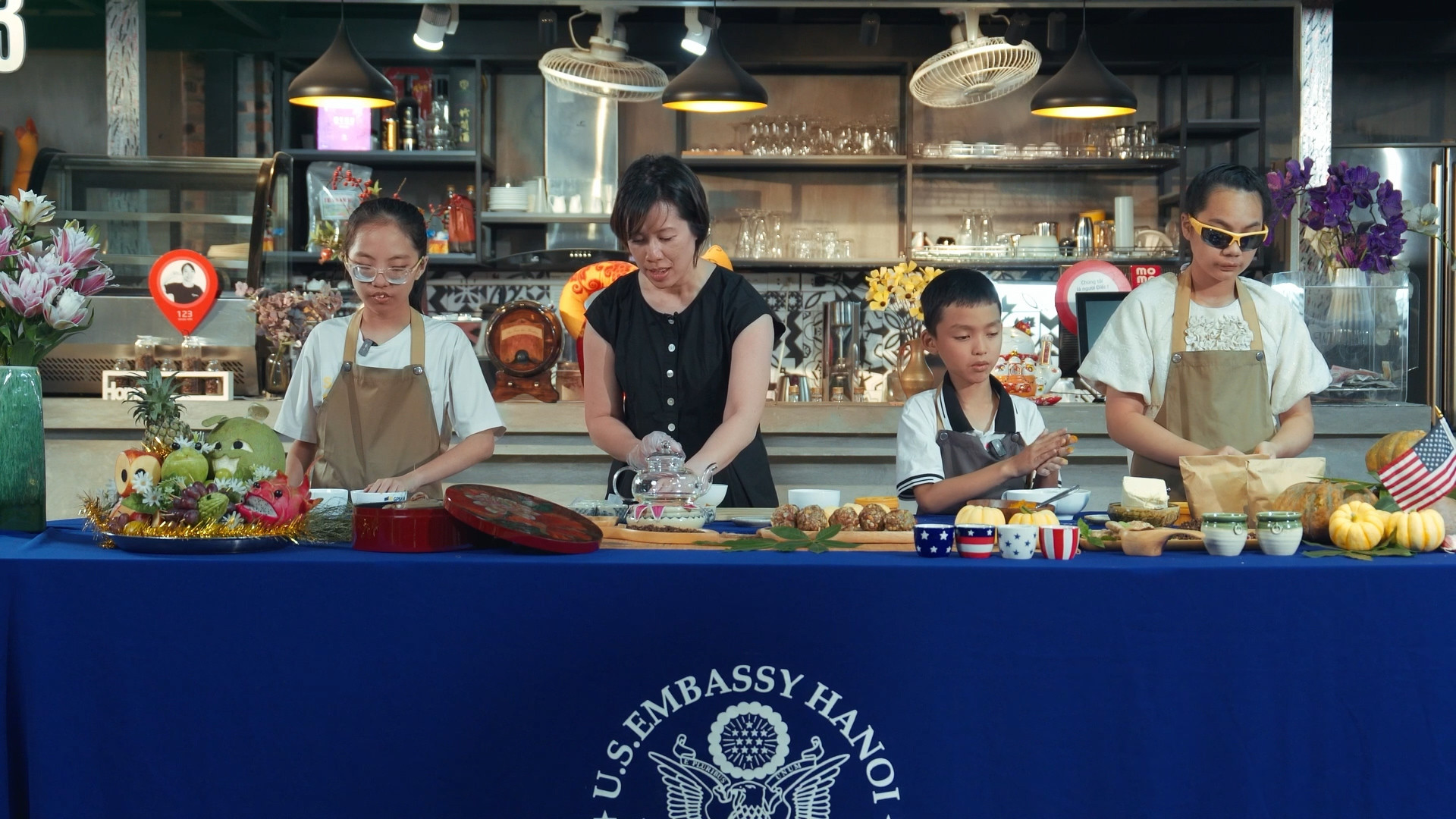Christine Hà đã hướng dẫn các bạn nhỏ khiếm thị làm món bánh Trung thu với công thức của riêng của cô, kết hợp hài hòa các nguyên liệu của Mỹ và Việt Nam như bí đỏ, quế, gừng, kem phô mai trong chiếc bánh dẻo. "Ban đầu các bạn nhỏ hơi ngại ngùng nhưng sau đó các em thoải mái hơn. Tôi nghĩ cả tôi và đám trẻ đã rất vui", nữ đầu bếp chia sẻ.